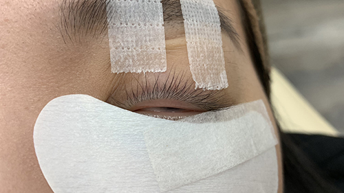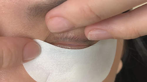 1) 固定下睫毛眼膜時,造成客人異物感,而導致流淚