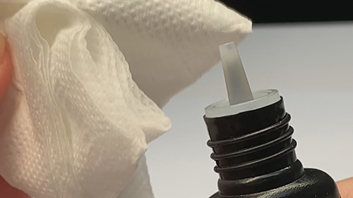 5) 使用乾淨且不殘留棉絮的紙巾或不織布擦拭瓶口,直到乾淨為止