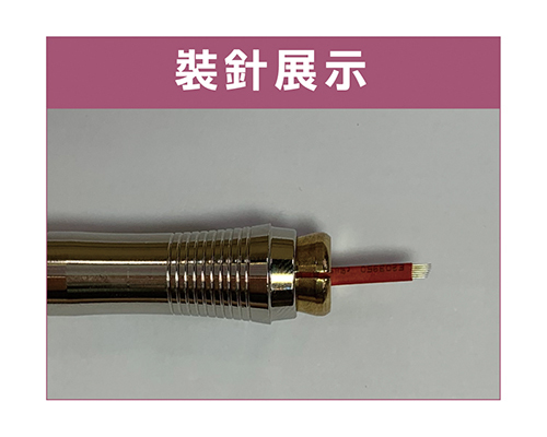 1、將紋繡針片插入筆頭上的十字孔中,完成固定