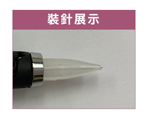 -針套開孔設計,能在最短時間吸取大量色料,減少重複吸取色料次數,降低針尖受損機率並且不會造成噴色現象。