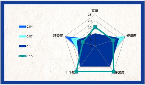 重量減少30%,雖是0.10粗細,依舊舒適。
