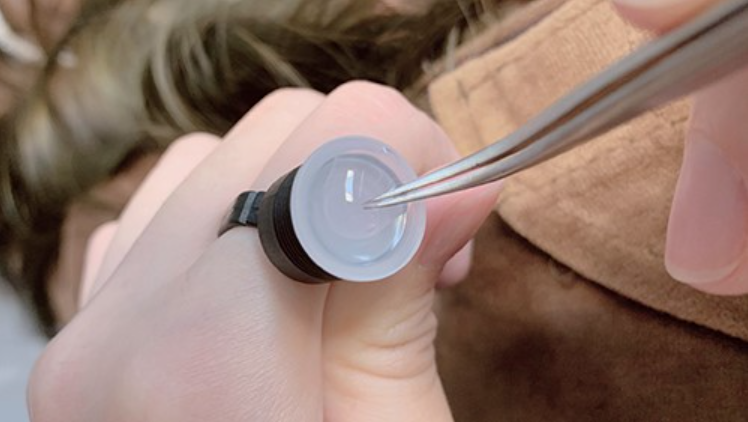 3) 夾子於睫毛黏接處,夾子開合滑動至睫毛卸除,並勿接觸到皮膚
