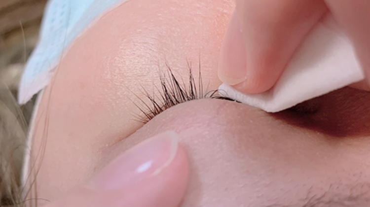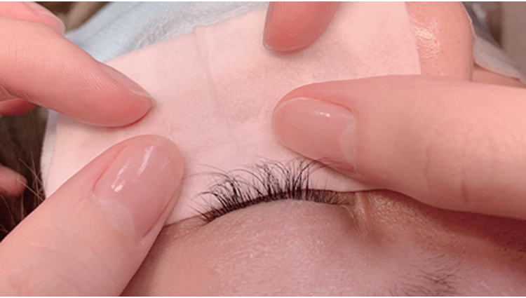 5) 移除化妝棉/眼膜,並使用植睫專用睫毛清潔片清潔